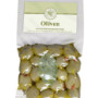 Zutaten: Oliven grün* (85,7%) (Paprika*, Meersalz, Zitronensäure), Rapsöl* (14%) (kaltgepresst), Lorbeer*